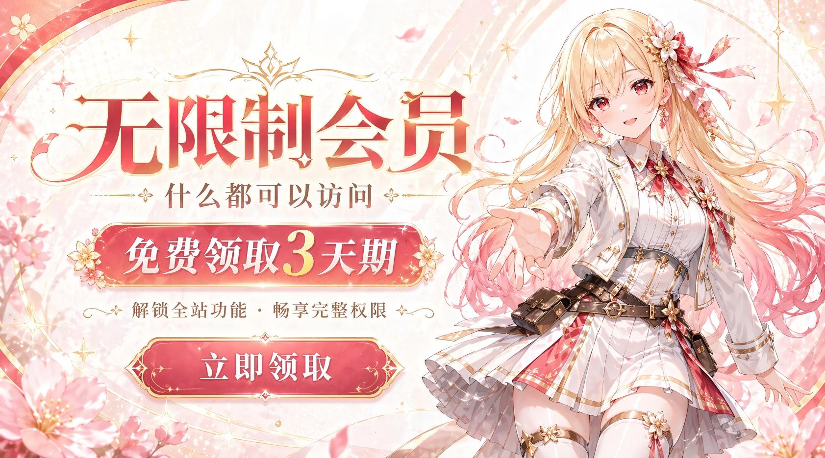 一份来自幻想世界的小小赠礼,已经为你准备好啦。 活动期间内,可免费领取3天无限制特权,体验更加完整、更加自由的访问权限。 无需复杂操作,轻轻一点,就能把这份限定福利收入囊中。